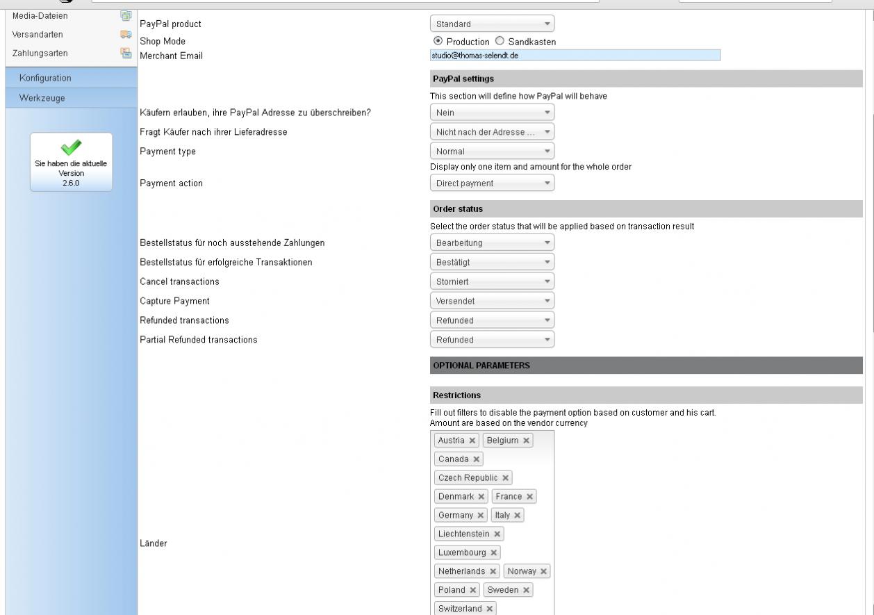 Ich habe gelesen, dass auch das Paypalmudul geändert wurde. Nun weiß ich jedoch gar nicht mehr genau, was ich vorher eingestellt hatte.