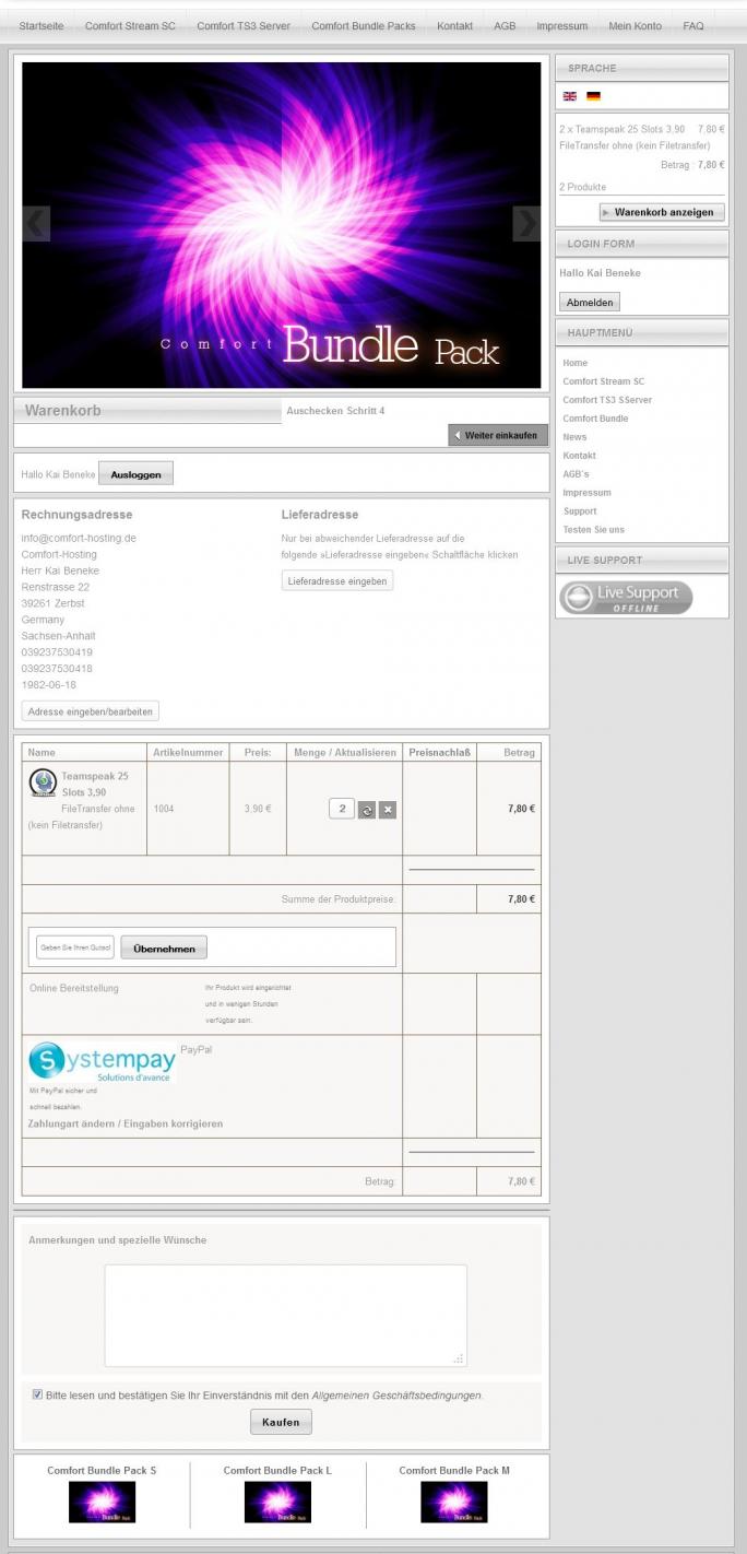 Will man jetzt aber in der Englischen Sprache etwas bestellen funktioniert es bis zu dem Punkt wo man in den Wahrenkorp geht. Dann wird es etwas Tricky, als erstes verschiebt sich das Ganze Layout so das das Menü auf der Rechten seite ganz unten ist. Man kann keine Zahlarten wählen und der Zur Kasse Button ist auch nicht mehr da.