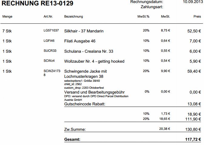 Entweder Rabatte vor der Steuer auf einen steuerbaren Betrag (bei dir mit +10 / +20% ) berechnen oder auch Gutscheine / Rabattcodes versteuern. So wie die Standardlösung ist, ist sie steuerrechlich nicht in Ordnung!
