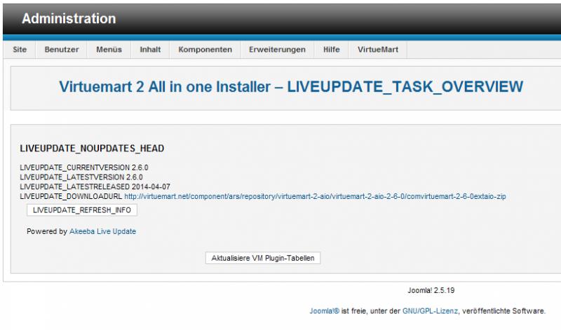 ... Und auch bei der Komponente com_virtuemart; Backend und Frontend.