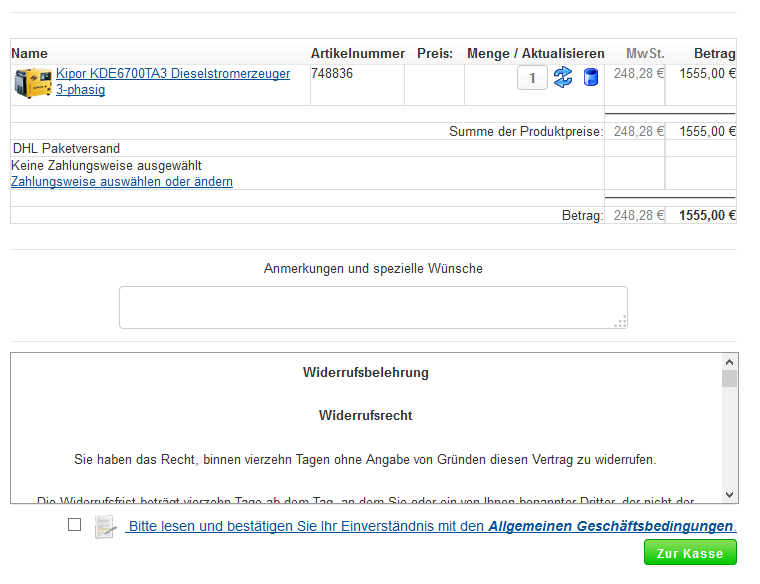 Trotzdem sehe ich die Widerrufs-Informationen weder online noch in der Bestätigungs-E-Mail.
