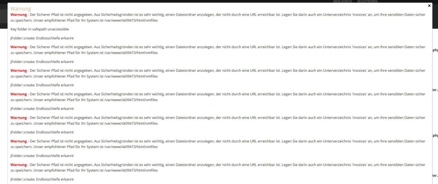 laut einer meldung im backend sollte ich für die daten einen sicherheitsorder vmfiles mit einem unterordner