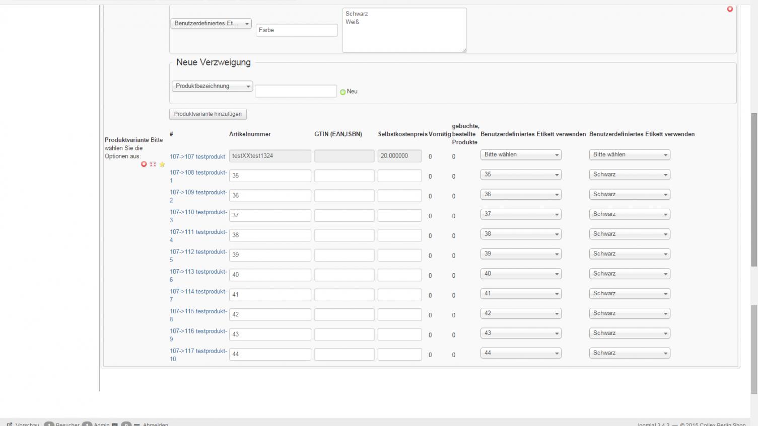 zu erstellen. Dazu möchte ich für jede Größe und Farbe die Bestände eintragen. Damit nicht bestellt werden
