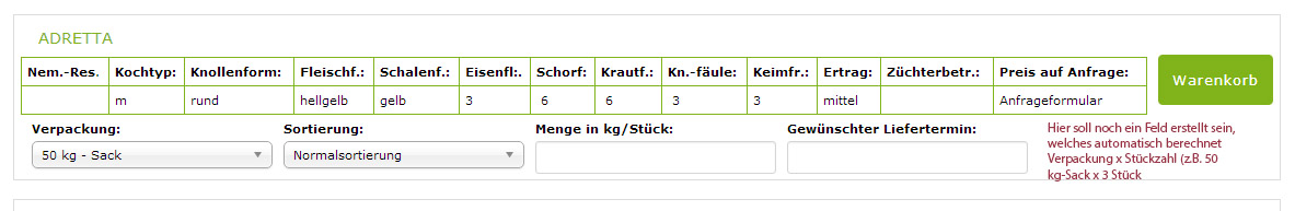 dass automatisch die KG errechnet. Ich habe ein Auswahlfeld mit Verpackung und ein Textfeld mit Eingabe der Stückzahl oder KG. Wenn z. B. eine Verpackung von 50 kg-Sack ausgewählt wird und als Stück 3 eingeben wird, soll in diesem neuen Feld dann automatisch die KG angezeigt werden, wie in diesem Beispiel 150 kg.