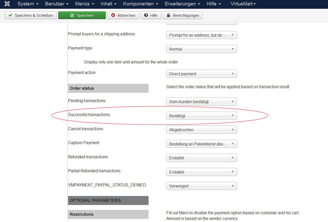 Problem: der Bestellstatus ist nach erfolgreicher Zahlung "Neubestellung" und nicht "bestätigt" wie im Plugin bei den Konfiguration eingegeben ... daher wird auch keine e-mail Bestätigung an den Verkäufer bzw. Käufer versandt ...