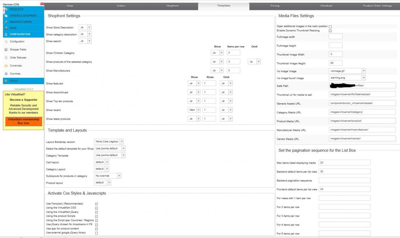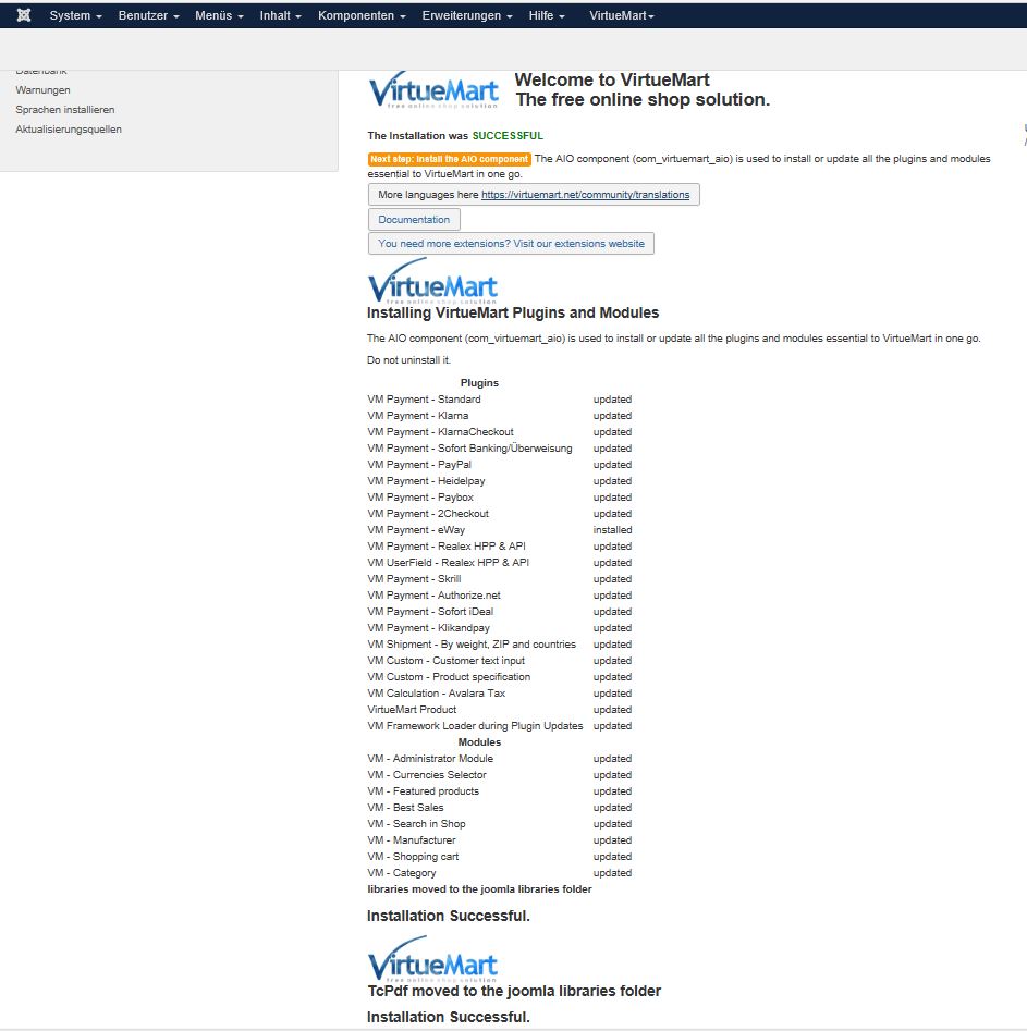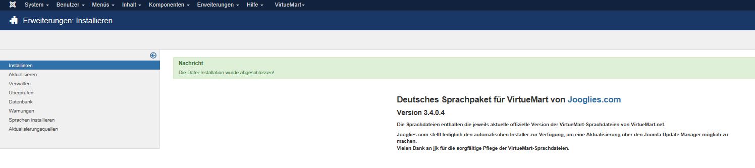 Dann habe ich, der Dokumentantion folgend die deutschen Sprachfiles für VirtueMart abgelegt.