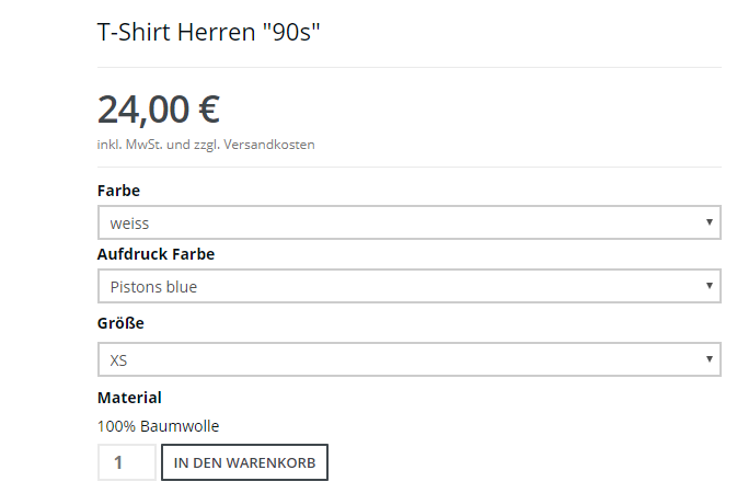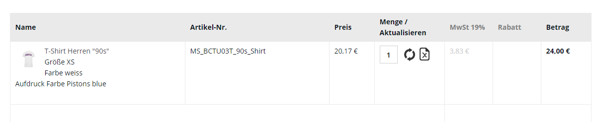 Alle Felder werden mir im Warenkorb angezeigt, auch sauber die Farbe und der Aufdruck.