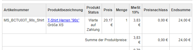 In der Datenbank sehe ich bei einem älteren Verkauf, wo noch alles funktionierte im Feld "product_attribute" die Werte: