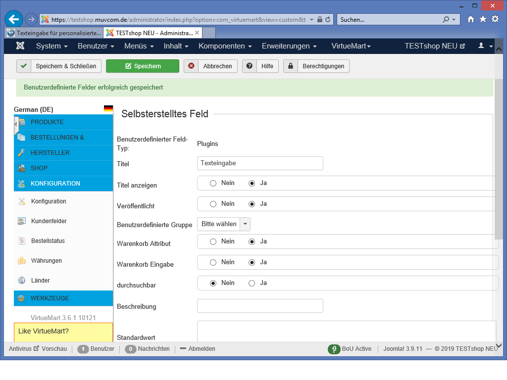 Jetzt kann ich das Feld endlich zumindest schon mal einfügen.