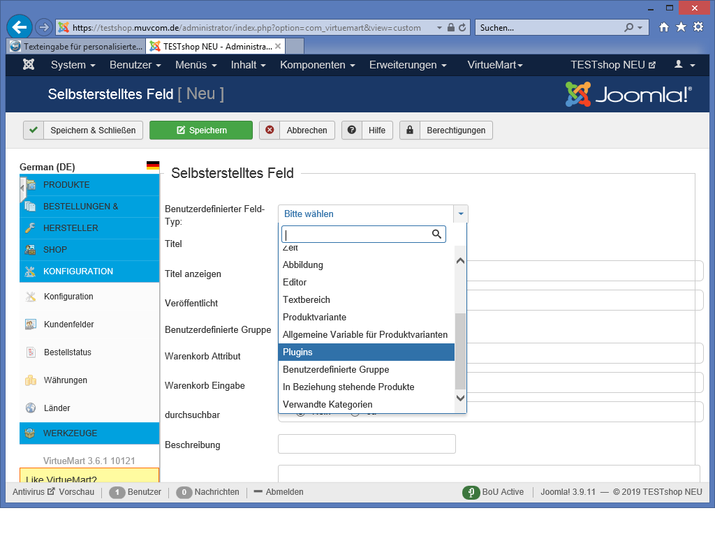 Ich habe auch schon probiert nochmal ein neues Feld vom Typ Plugin zu erstellen, erstellen und auswählen kann ich es, aber es erzeugt genau den gleichen Fehler nur mit einer anderen Feld-ID.
