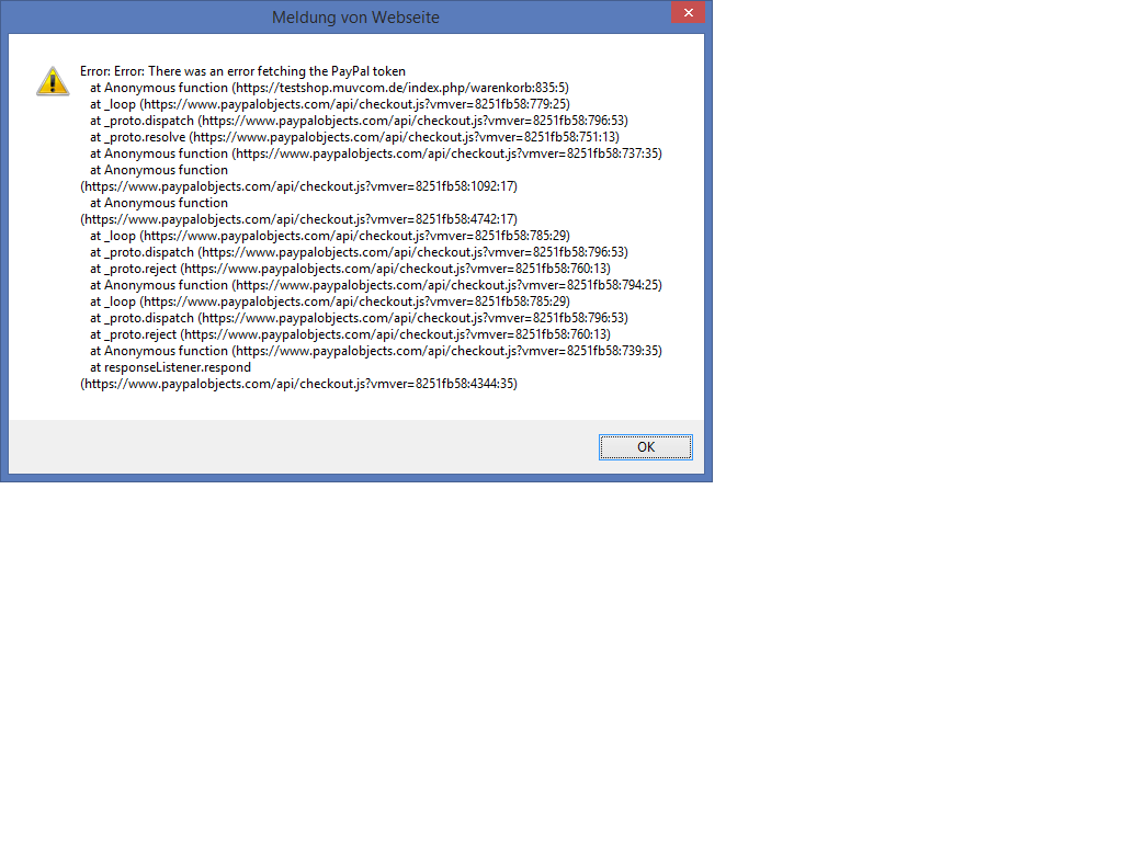 Ich dachte, dass meine Einstellungen jetzt wenigstens im Production Modus funktionieren, weiß aber seit dem Wochenende, dass das nicht so ist. Eine Kundin hat mit geschrieben, dass nach dem Klicken des "Direkt zu PayPal" Buttons (auf der Warenkorbseite) nur eine weiße Seite mit den Symbolen .)/ kam.