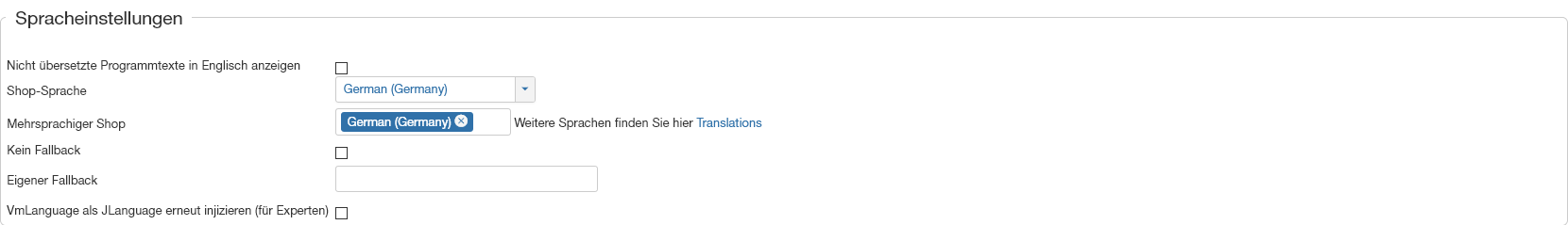 ... ich habe rausgefunden, dass wenn ich im Menüpunkt "Produkte anzeigen" auf NEIN stelle (siehe Anhang), kommt die fehlerhafte Sprache.