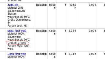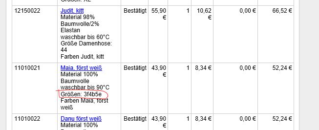 Wir haben das Problem, dass in einem Shop ohne erkennbaren Grund die Größenangaben teils kryptisch übermittelt werden.