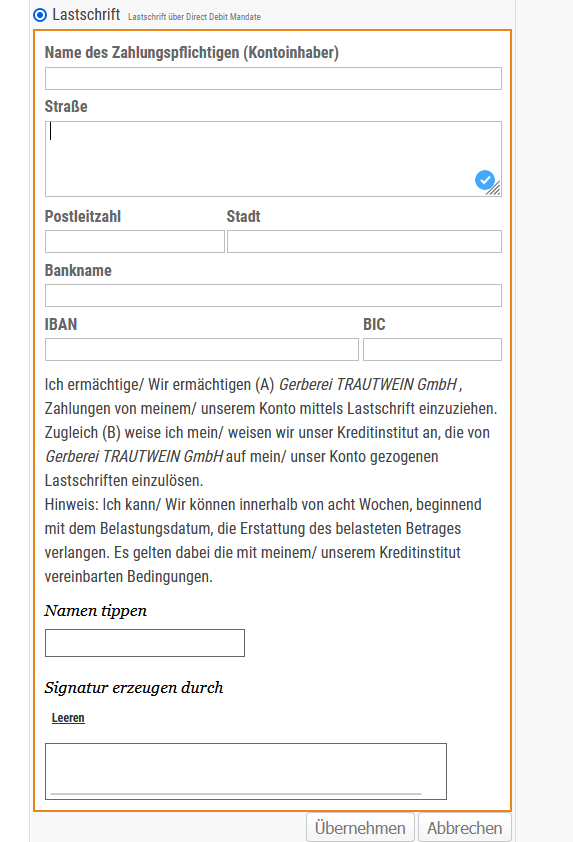 Bisher müssen unsere Kunden einen SEPA - Vordruck downloaden, ausfüllen und an uns zurücksenden.