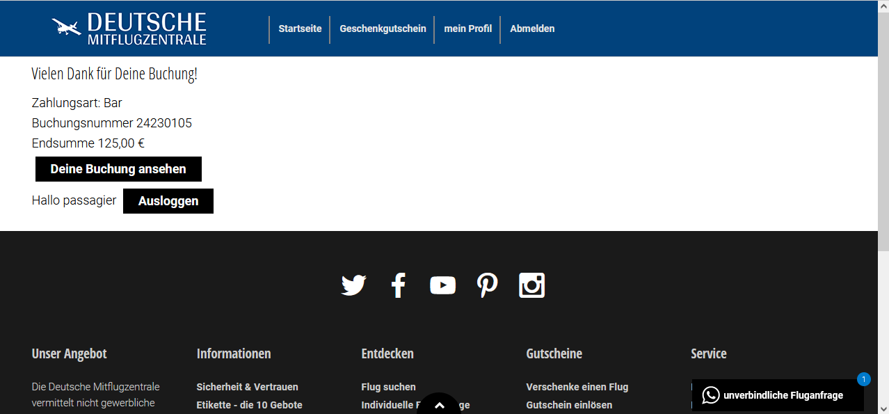 wenn ein Kunde bei mir eine Buchung tätigt, wird dieser auf die VirtueMart Dankeseite weitergeleitet. Einen versteckten Menülink habe ich dazu erstellt.