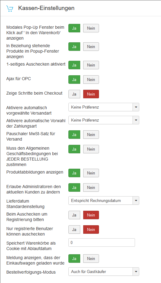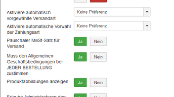 Unsere Checkout Einstellungen im Backend unter Virtuemart > Konfiguration > Checkout: