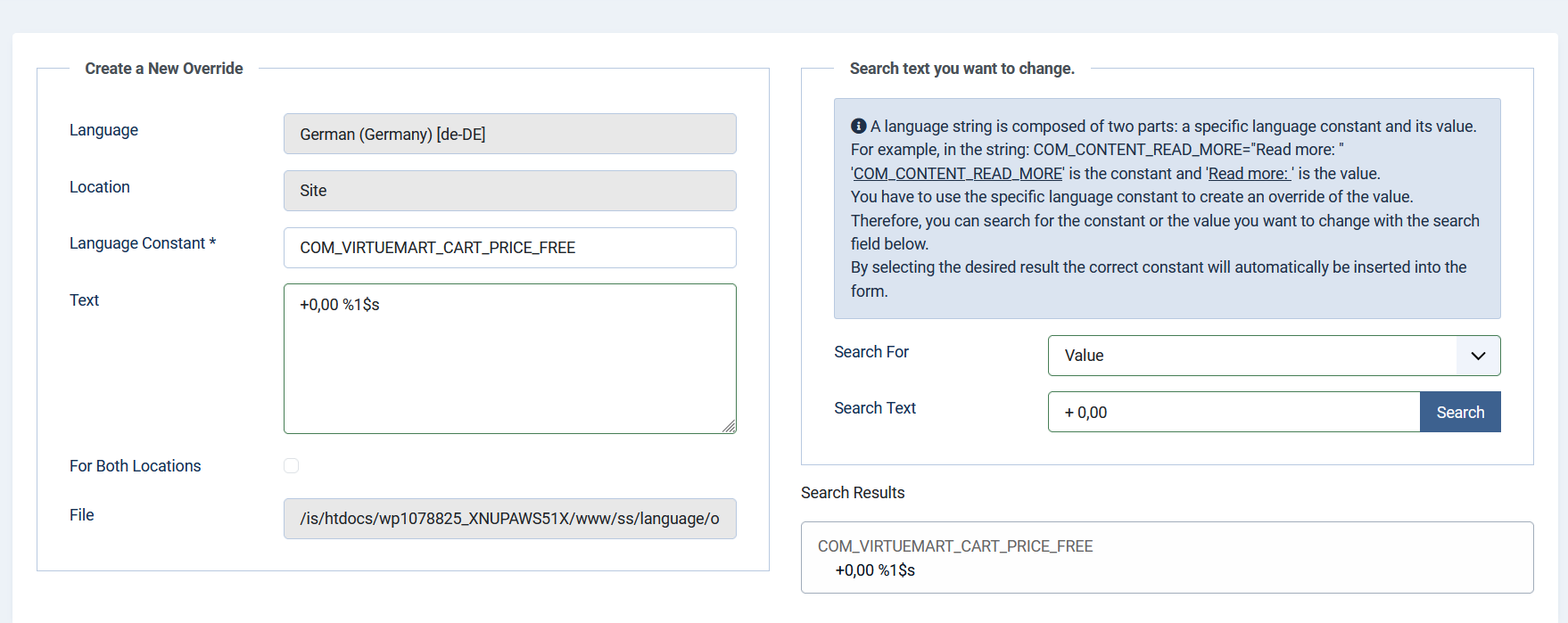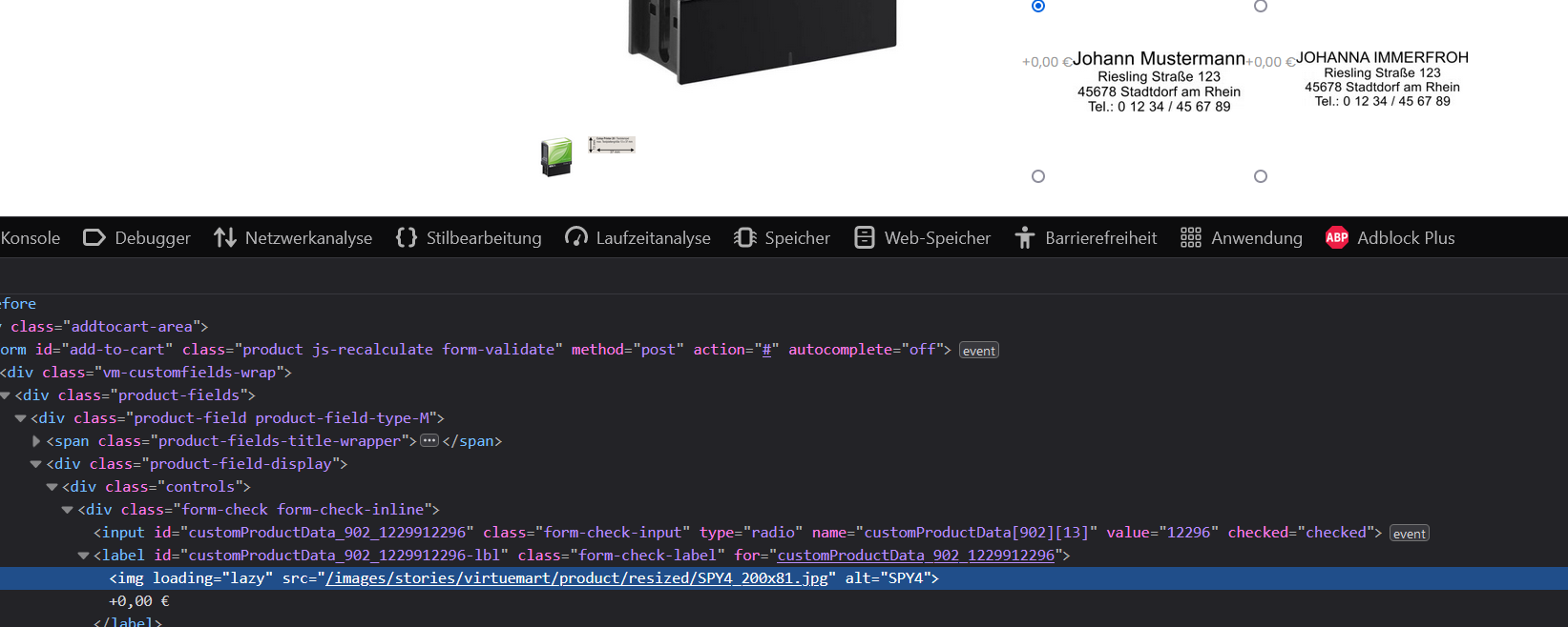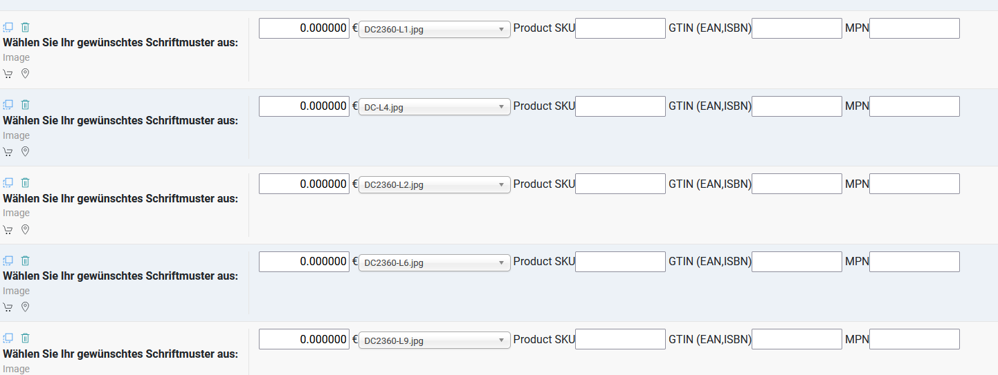 nach Update von Joomla 4.4 auf VM 4.2.0 werden die konfigurierten Felder, in unserem Fall Auswahl eines Schriftmusters, zusätzlich mit Euro Beträgen angezeigt. Per CSS ist es leider nicht möglich die Beträge auszublenden. Hardcoded konnte ich die Ausgabe leider nicht finden. Im Backend gibt es keine Einstellung diese Beträge zu entfernen. Im Produkt unter Selbsterstellte Felder steht zwar ein Eurobetrag, welcher aber nicht leer gelassen werden darf.