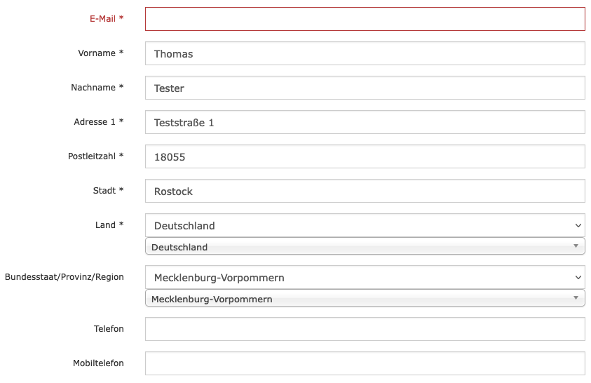 Das Adressformular ist nun wieder aufrufbar. Nun jedoch habe ich leider zwei andere Fehler.