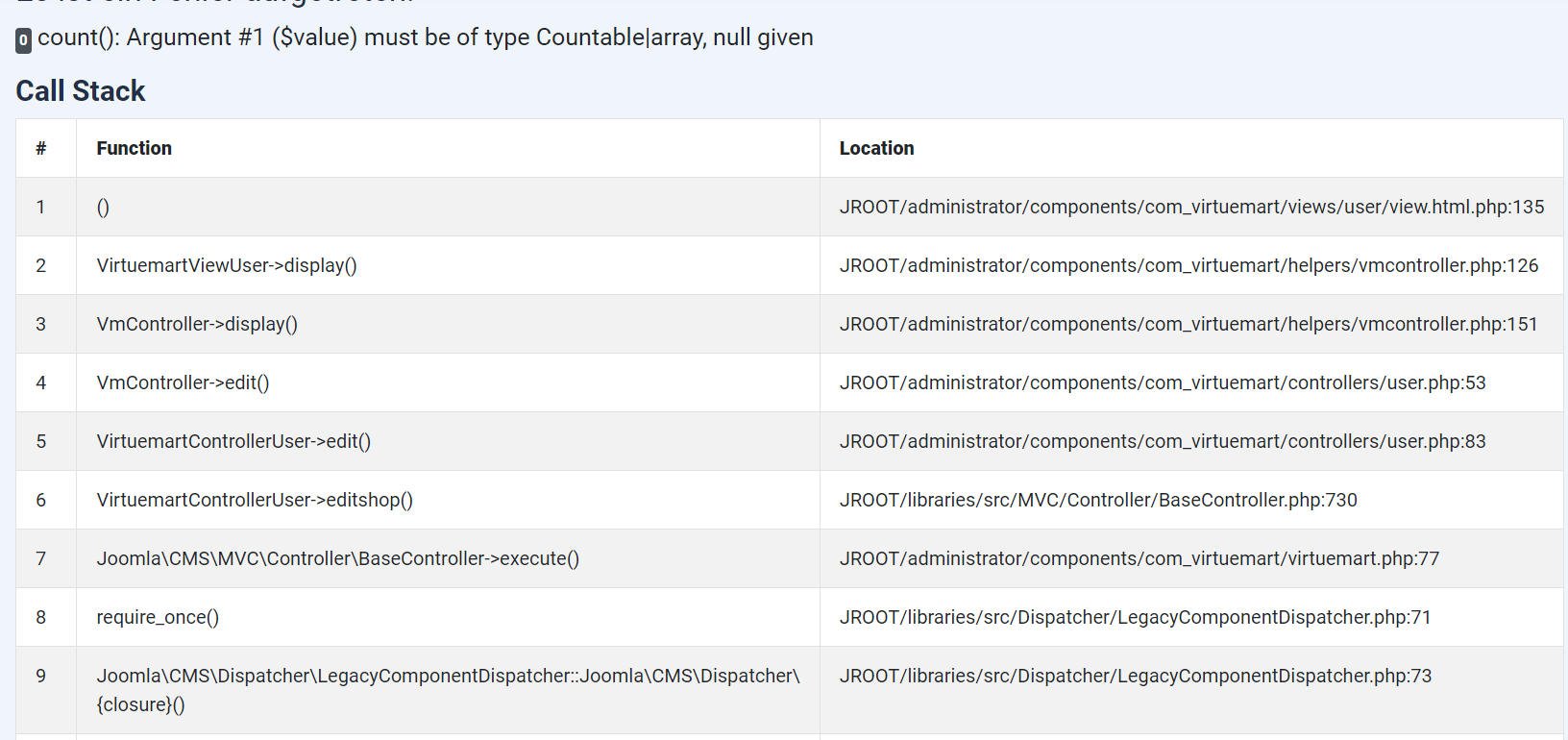 Ich versuchte auch erfolglos Virtuemart zu deinstallieren.