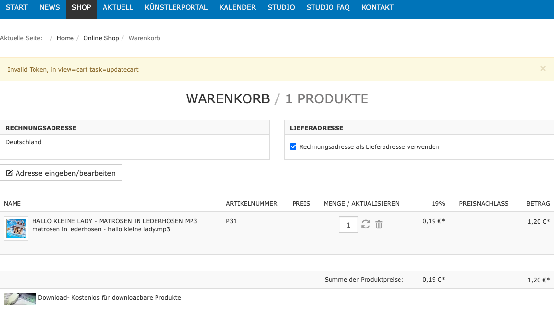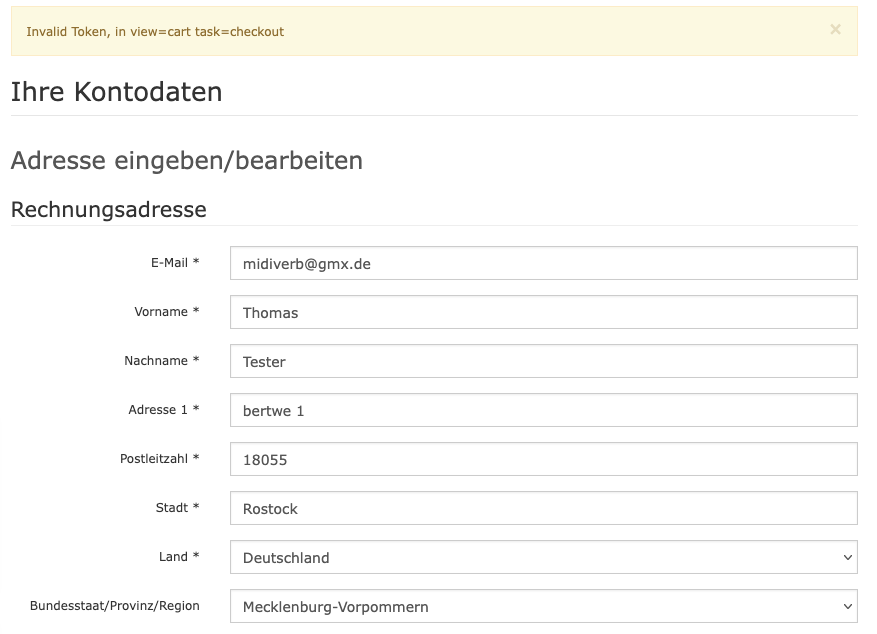 ich habe heute in einer Testversion die neue Version 4.6.0 getestet. Wenn ich ein Produkt in den Warenkorb lege und auf "Zur Kasse" klicke, bekomme ich einen Tokenfehler angezeigt, wie hier im Bild zu sehen ist: