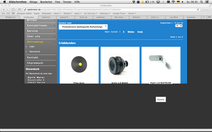 Wenn ich nun mit dem Safari Browser (Mac OS) die Kategorieansicht oder teilweise auch die Produktdetails ansehe, dann schneidet der Safari die Website unten ab. Also wenn ich nach unten scrolle hat alles nur die Hintergrundfarbe, was vorher nicht zu sehen war. Es ist ein wenig merkwürdig. Wenn ich dann mit der Maus über die Bilder oder so komme, dann erscheinen die Bilder wieder. Wenn ich die Seite nochmal lade, dann ist alles in Ordnung. Hier mal ein Link (ihr müsst ein wenig hin und her surfen um den Effekt zu erhalten):