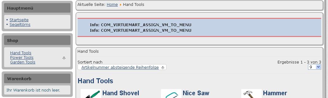 VM-Kategorieansicht zeigt komische Meldung