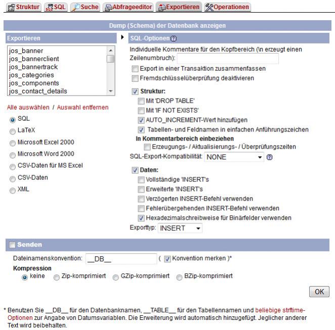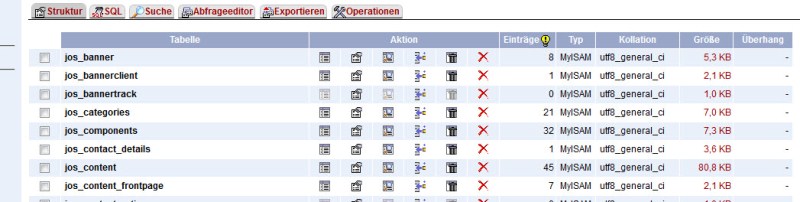 Bestehende Tabellen löschen: Alle bestehenden Tabellen werden gelöscht und durch neue Tabellen aus der Installation ersetzt.