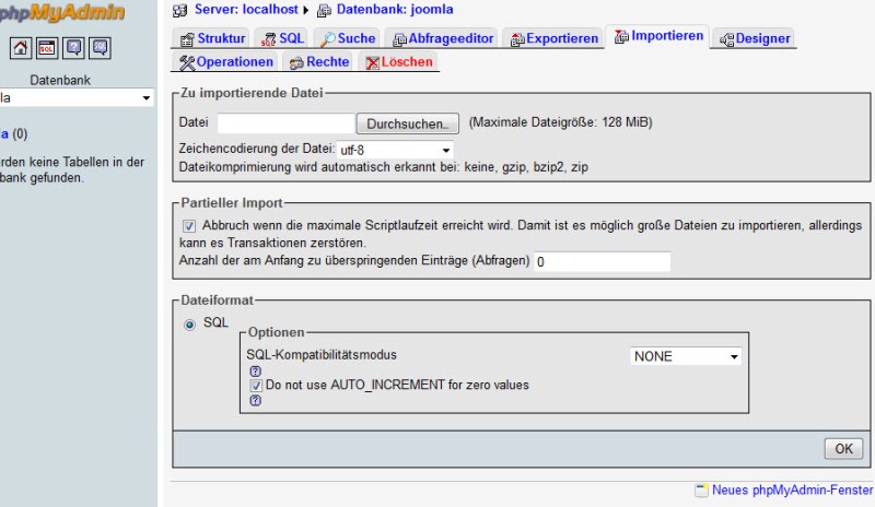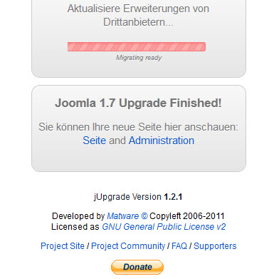 Andererseits, wenn Sie doch eine ältere Joomla! Installation migrieren wollen, haben Sie hier eine passend bereitgestellte Funktion zur Verfügung. Sie können den Inhalt der alten Datenbank aber auch später manuell migrieren, indem eine entsprechende SQL-Abfrage im phpMyAdmin innerhalb der neuen Datenbank durchführen. Das hier bereit gestellte Hilfsmittel ist darauf angewiesen, dass ihr vorliegendes (bereits erstelltes) Migrationsskript aus der alten Joomla! Installation zur Version der jetzt anstehenden Joomla! Installation kompatibel ist. Die beste Vorgehensweise, um dies zu erreichen, ist die Verwendung des „com_migrator“. Mit diesem Werkzeug können Sie ein Migrationsskript innerhalb ihrer alten Joomla! Umgebung erstellen.