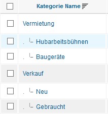 In meiner Navigation habe ich jeweils einen Link zu den Kategorien Verkauf und Vermietung. Dort sollen nun die Produkte der Unterkategorien angezeigt werden, was ich allerdings nicht hinbekomme. Ich kann nur die entsprechende Unterkategorie auswählen oder den Produkten zusätzlich zu neu/gebraucht auch noch die Kategorie Verkauf/Vermietung zuordnen, dann werden sie angezeigt. Allerdings wird dann die gewünschte Trennung zwischen neu und gebraucht nicht mehr deutlich.