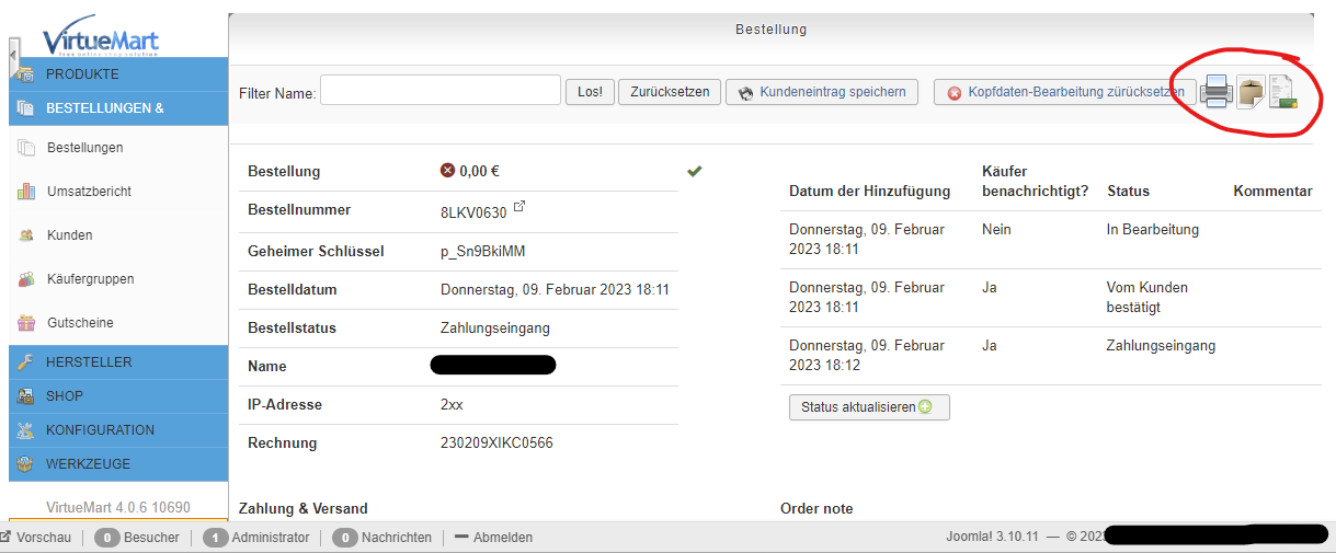 Vielleicht noch einmal alles aus dem Paket heraus einzeln installieren. Core, AIO, TCPDF, vmadmin-Template.
