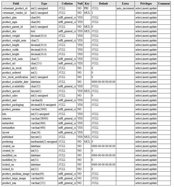 Row size too large. The maximum row size for the used table type, not counting BLOBs, is 65535. This includes storage overhead, check the manual. You have to change some columns to TEXT or BLOBs SQL=ALTER TABLE `#__virtuemart_products` CHANGE COLUMN `product_sku` `product_sku` VARCHAR(255) AFTER `product_parent_id`"