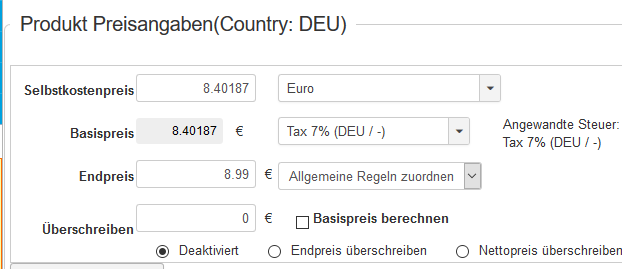 Ich habe ein Produkt mit einem Gewicht von 500g, Kosten 8,99€.