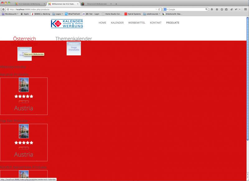 Woran ich jetzt grad wieder feile ist die Produktbilder Gallerie, wie erwähnt gehts um Kalender, bei normalen Kalendern mit 13 Bildern (Deckblatt und 12 Monate) sieht das alles sehr ok aus. Ich habe aber jetzt einen Kalender der wesentlich mehr Seiten hat angelegt und habe jetzt eine ewig lange wurst an Bildern hintereinander, gibt es eine Möglichkeit einen Umbruch bei den Bildern zu erstellen? Oder den Shop auf eine fixe Breite einzustellen? oder noch besser die Bilder vertikal neben das große Bild zu stellen? Habe mal einen Screenshot beigefügt.