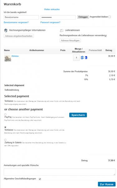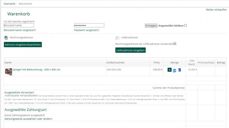 Anbei ein Screenshot des Warenkorbs.Grüße