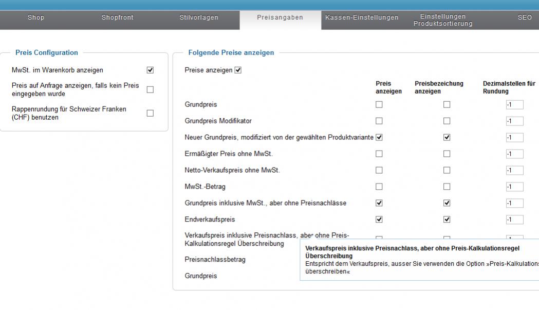 Also die momentane Einstellung ist so, dass ein Häkchen beim "MwSt. im Warenkorb anzeigen gesetzt ist. Ich bekomme aber trotz aller Versuch immer nur die Nettopreise bei den Einzelpreisen angezeigt, so dass ich diese Spalte erstmal entfernt habe. Es muss doch irgendwie möglich sein, die Bruttopreise auch als Einzelpreis anzeigen zu können?!