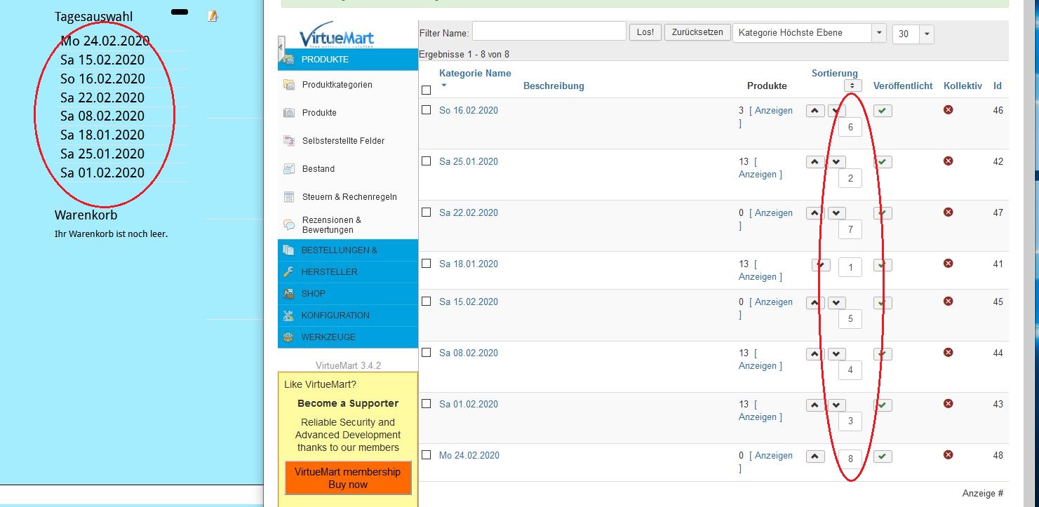 Ich war der Meinung, die Nummerierung bei Sortierung ist die Reihenfolge im Frontend, aber dort ist es leider in einer Anderen Reihenfolge.