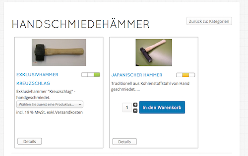 Ich Stelle mir hier vor, dass bei dem rechten Hammer der Preis direkt angezeigt wird, da der Artikel hier ja auch dierekt bestellt werden kann. Und bei dem linken Beispiel sollte stehen: "Preis ab: XXXX".
