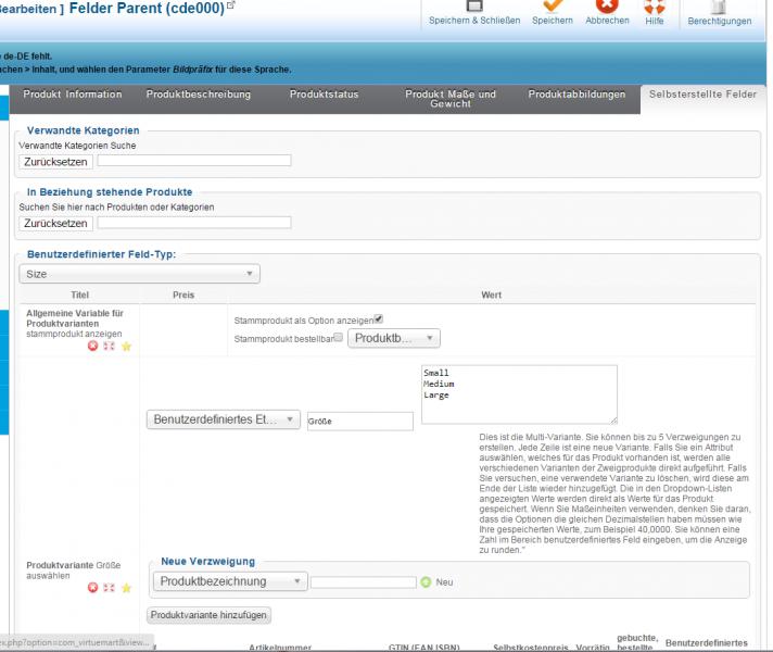 also wenn ich ein Parent-Produkt mit Varianten erstellen möchte , egal ob ich das mit den Selbsterstellten Felder (für Stammprodukt bestellbar und den Produktvarianten, über das Benutzerdefinierten Etikett für Small, Medium, Large) macheoder