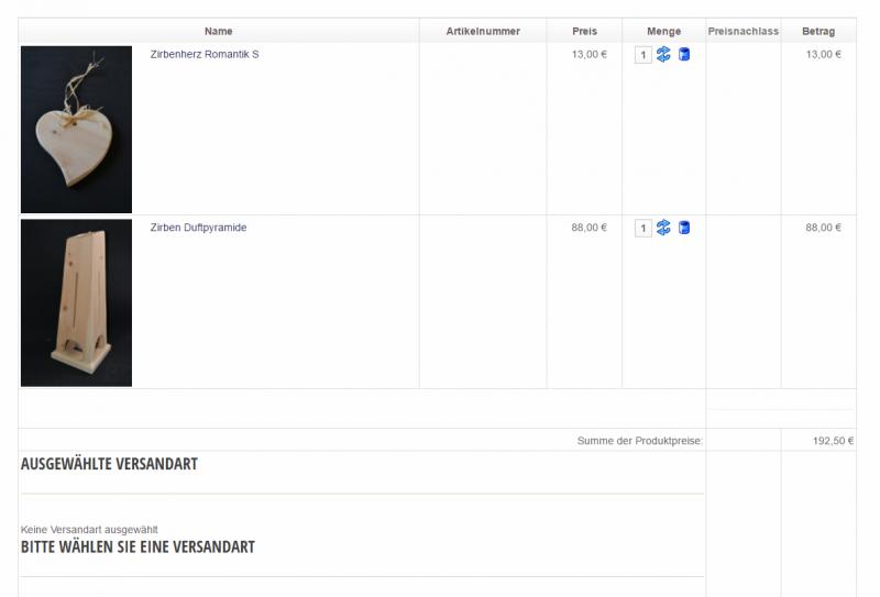 Hier habe ich 4 Produkte in den Warenkorb gelegt... aber nur 2 sind sichtbar.. (Gesamtpreis wird aber von allen Produkten angezeigt!)