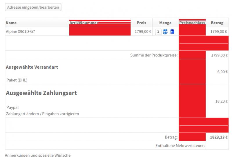 Folgende Felder (rot markiert) möchte ich gern im Warenkorb entfernen