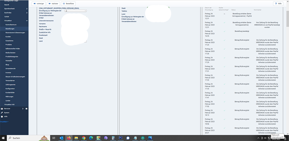 Wir haben unseren Shop auf Virtuemart 4 hoch gezogen, doch jetzt kommt bei einer Rückzahlung oder auch Teilrückzahlung über Paypal, immer mehrfach (manchmal 15 mal) " Die Zahlung für die Bestellung wurde über Paypal zurück erstattet ". 1x würde doch im Status genügen. Hatte dies schon einmal jemand oder hat jemand eine Idee wie das richtig gestellt werden könnte?