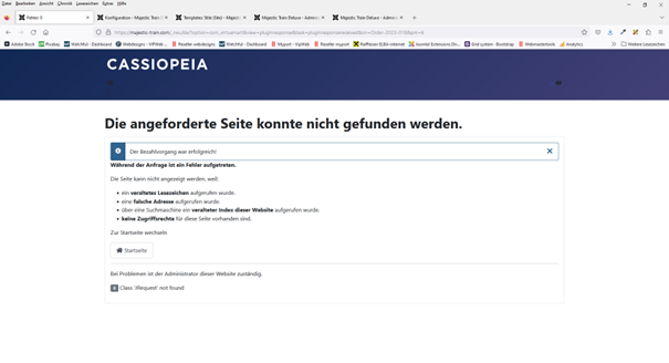 Nach Migration auf Joomla 4.2.0 / VirtueMart 4.0.12 10777 bekomme ich bei nach Zahlung bei Paypal sowie Kreditkarte jetzt folgende Fehlerseite: