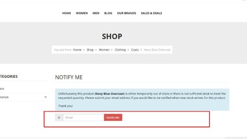 Wenn ich den Button NOTIFY ME auslöse erscheint Bild FM2 und ich kann als Kunde meine email eingeben.