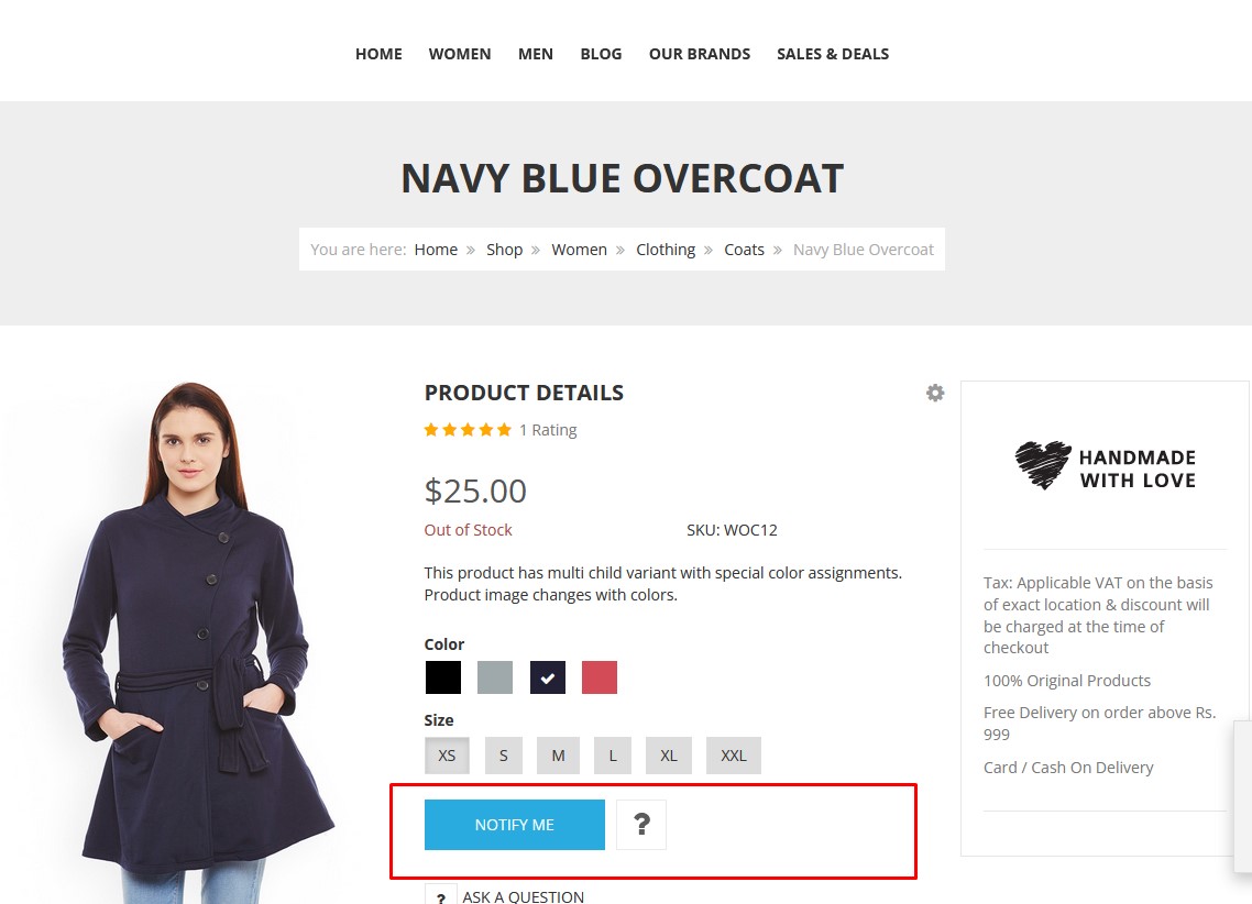 ich habe folgendes Problem. Ist ein Produkt ausverkauft kommt im Produktbild Out of Stock und der Button zeigt NOTIFY ME (Bild FM1).