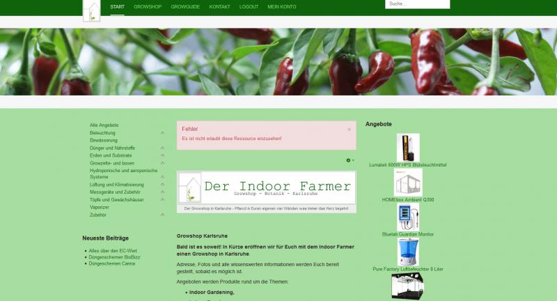 Meine Seite Growshop Karlsruhe | Der Indoor Farmer war bis vor kurzem noch in der Konfiguration offline gestellt. Hier gab es bei Login nie eine Fehlermeldung dieser Art.