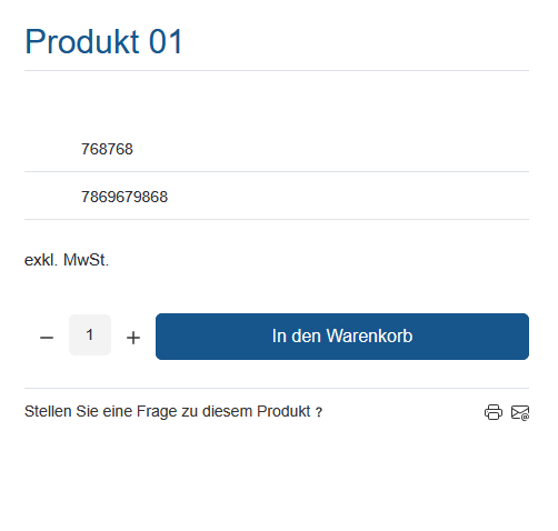 Wenn ich nun das Produkt öffne, auf selbsterstellte Felder gehe dann dort 2 mal das Feld wähle (damit darunter 2 Einträge erscheinen) und dort dann jeweils einen Wert eingebe, erscheinen diese einfach nur untereinander rechts neben dem Produktfoto über dem Feld in dem normalerweise der Preis (ist ausgeblendet) steht.... sozusagen als fester Text. Es ist nichts wählbar. Kein DropDown oder so...
