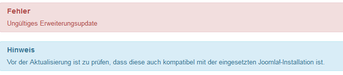 Ungültiges Erweiterungsupdate
