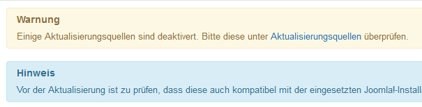 Einige Aktualisierungsquellen sind deaktivert. Bitte diese unter Aktualisierungsquellen überprüfen.