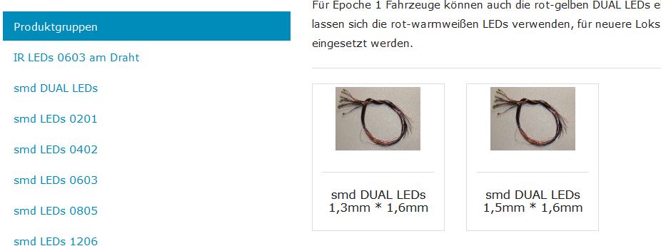 Webseite: www. led-am-stiel.de. Menü: Shop, Kategorie: smd DUAL LEDs, smd LEDs 0201 funktioniert.