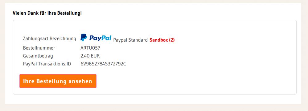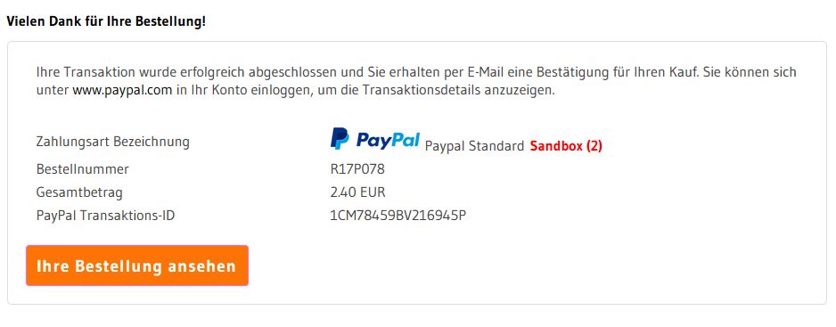 nach der Bezahlung mit Paypal werde ich zu meiner Webseite zurückgeleitet. Soweit funktioniert alles.Dann jedoch fehlen auf der 'Vielen dank für Ihre Bestellung' - Seite angaben zum Transaktionsbetrag, zur Transaktionsnummer und der Button zum ansehen der Bestellung. Erste wenn ich die Seite im Browser neu lade werden diese Infos angezeigt (siehe beigefügte Bilder). Wie kann ich das beheben?